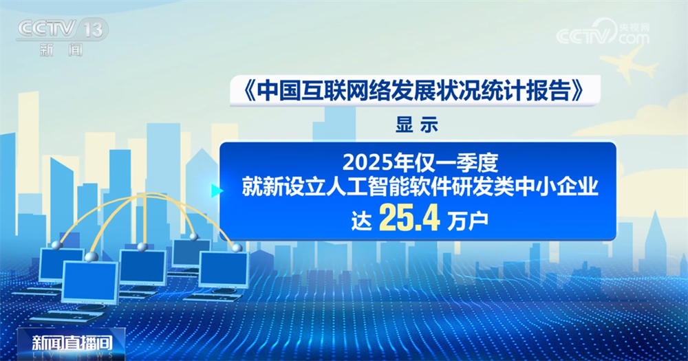 作为“主力军”,中小企业是人工智能落地“最后一公里”的实践者。《报告》显示,2025年仅一季度就新设立人工智能软件研发类中小企业达25.4万户。
