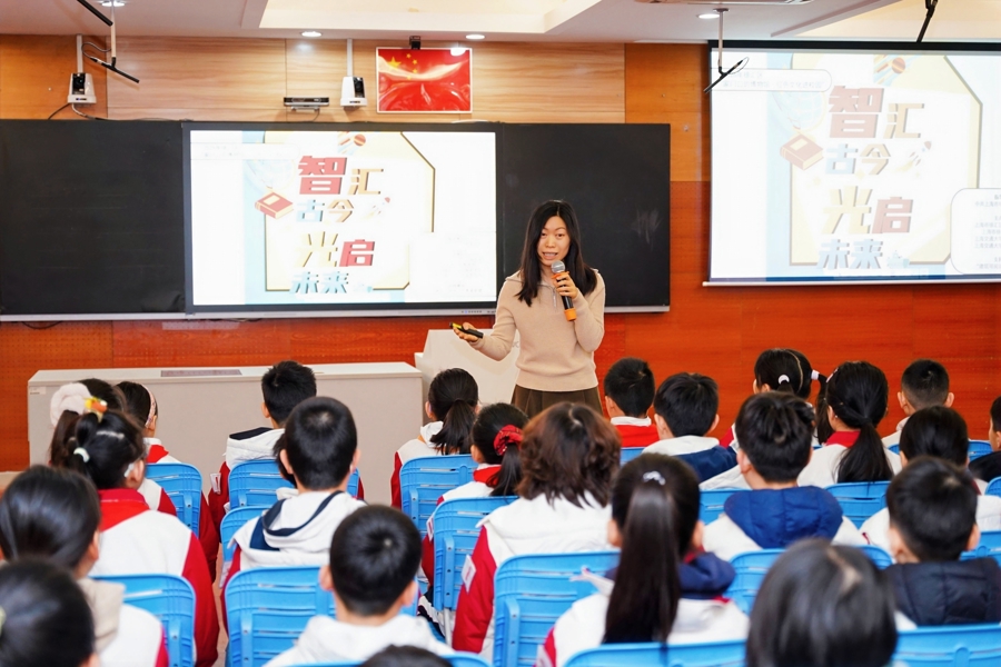从黄道婆到徐光启,再到盛宣怀创办南洋公学、开中国近代高等教育之先河,活动现场,庞雅丽带来《智汇古今 光启未来》主题宣讲。随后,科学精神的接力棒传到当代少年手中。学生代表走上讲台,分享交大校友钱学森与黄旭华的人生故事,他们是从徐汇走出的杰出学子,更是把一生献给祖国的科学巨匠。