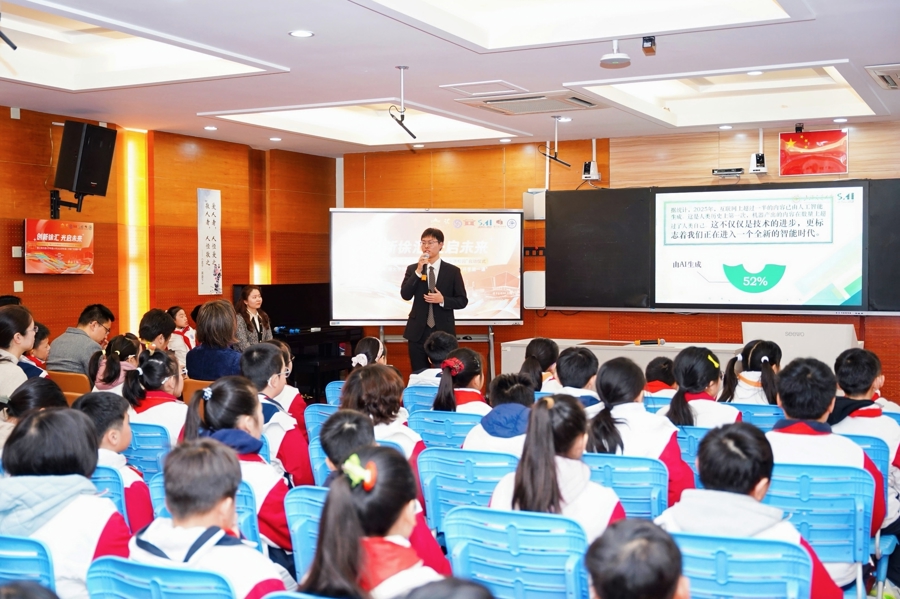 当天,上海交通大学人工智能学院的AI青少年项目负责人还分享了人工智能的前沿知识。活动尾声,钱学森“数字人”借助人工智能技术,跨越时空送上深情寄语,激励青春学子以探索为志、以报国为本,在时代浪潮中勇担使命、逐梦前行。